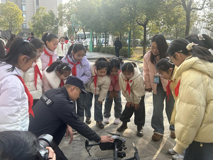 最令人激动的环节当属无人机表演和军姿展示。伴随着阵阵欢呼,无人机在天空中灵活盘旋、变换队形;民警叔叔们迈着铿锵有力的步伐,摆出标准的军姿,挺拔的身姿、整齐的动作,赢得了队员们热烈的掌声。