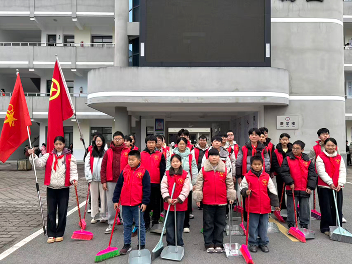 此次活动筹备周密、组织有序,校方提前细化各项安排,严把人员筛选与安全关。三至八年级每班在自愿报名的同学中选拔2名少先队员,活动期间规范佩戴红领巾;高一至高三每班在自愿报名的同学中选拔2名共青团员,统一佩戴团徽。学校提前准备团旗、队旗、志愿者马甲及手套等防护用品,学生自行携带清洁工具,同时提前明确安全细则,专项讲解工具使用方法与劳动规范,筑牢安全防线,保障活动顺利开展。